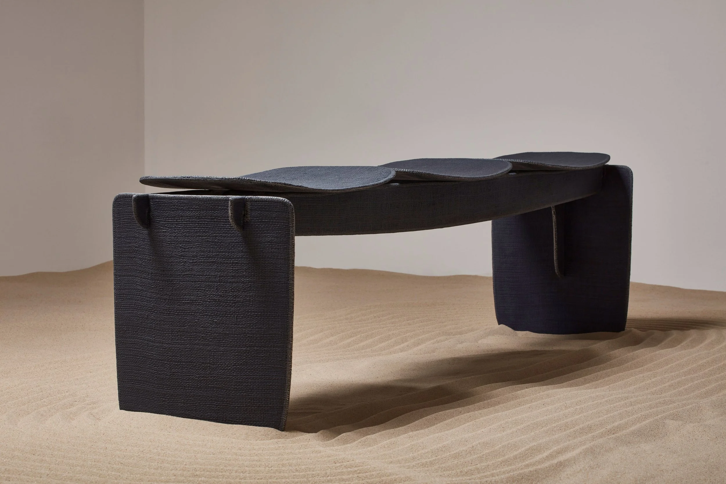 Aki and Arnaud developed a special manufacturing process which incorporates the process of sand-casting to achieve the appearance of intricate, handmade detail on the object’s surface. The duo experimented with this technique already in 2017 when their first Tiss-Tiss low chair which was awarded the Liliane Bettencourt Prize for l’intelligence de la main (the intelligence of the hand). It took them almost four years to develop the process, further resulting in a large amount of works which complete the Tiss-Tiss collection. The exhibition at Carpenters Workshop Gallery will allude to the process as the works will be displayed on a bed of sand.
